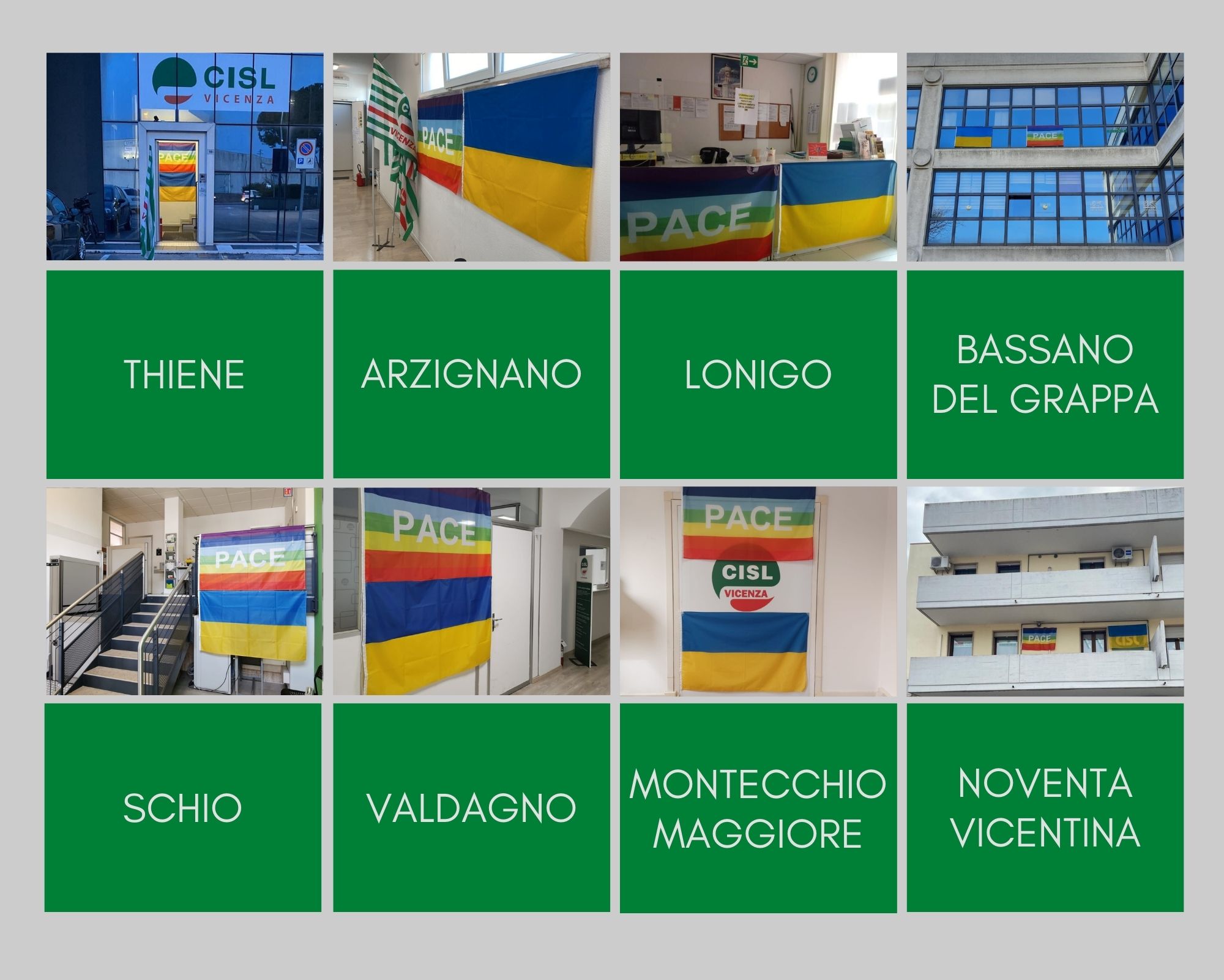 Da qualche giorno nel territorio vicentino anche le sedi Cisl espongono la bandiera dell'Ucraina e della Pace.