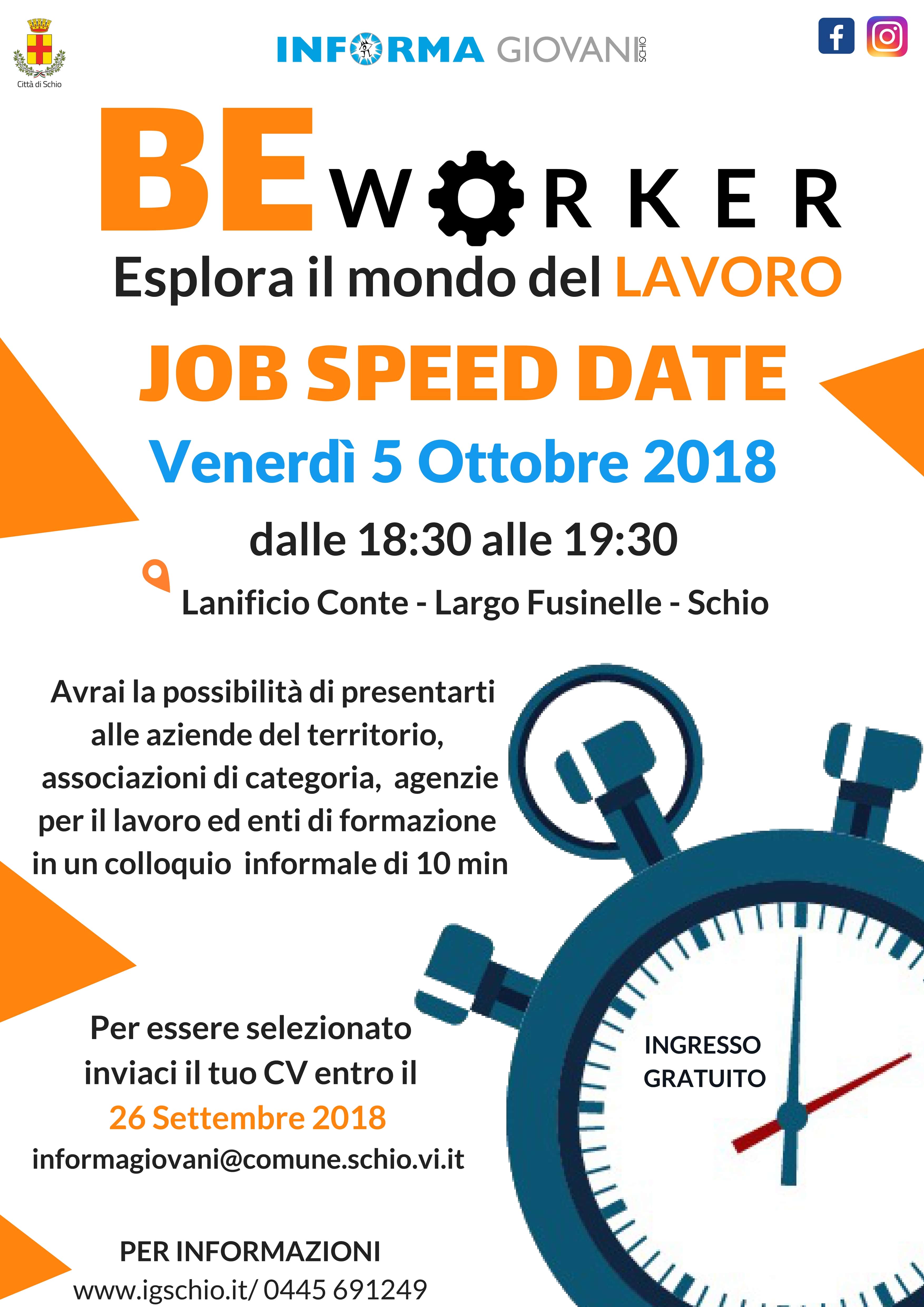 Be Worker venerdì 5 ottobre 2018 a Schio e ritorna Job Speed Date.