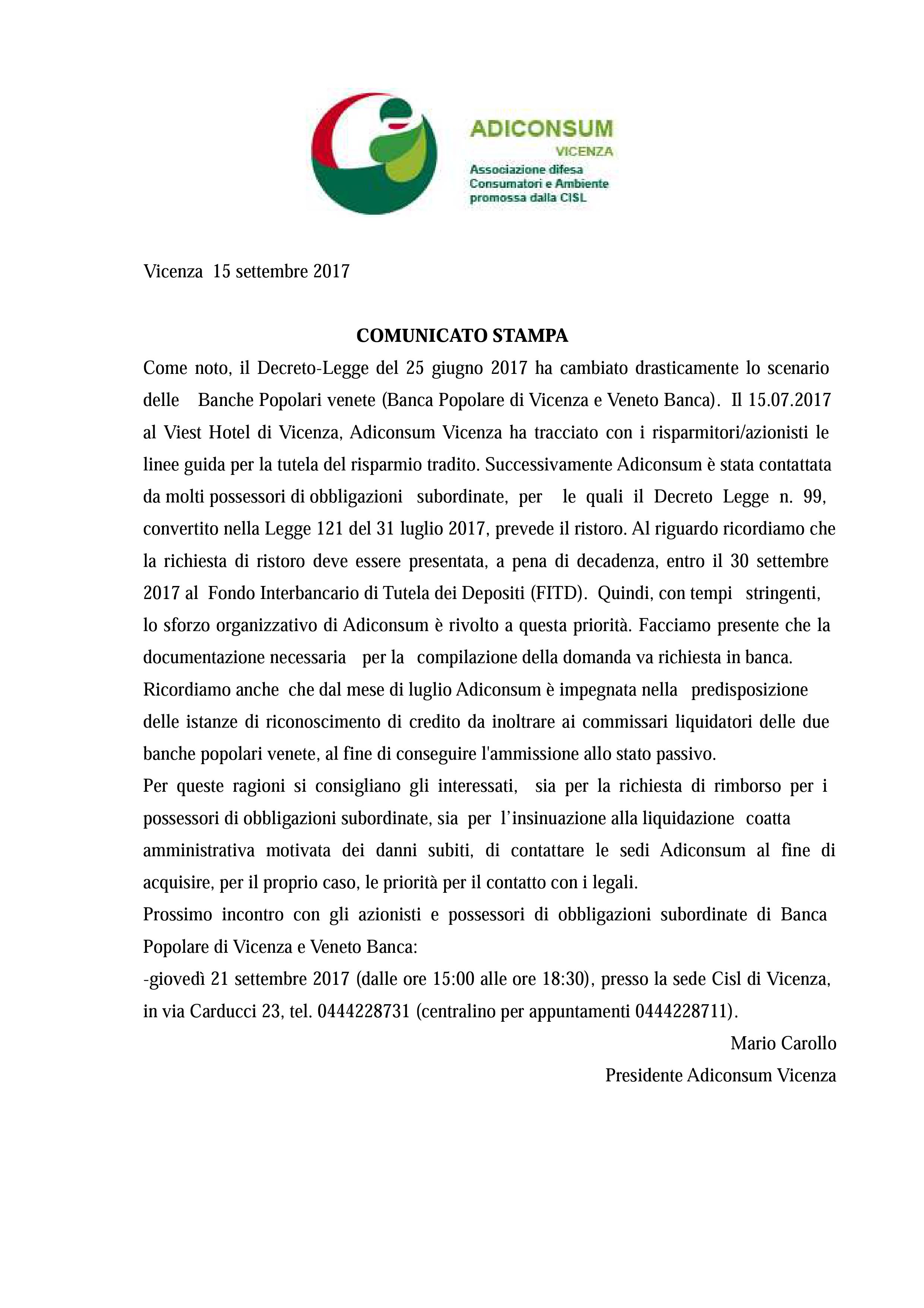 presso Cisl in via Carducci 23 Vicenza.![]()
