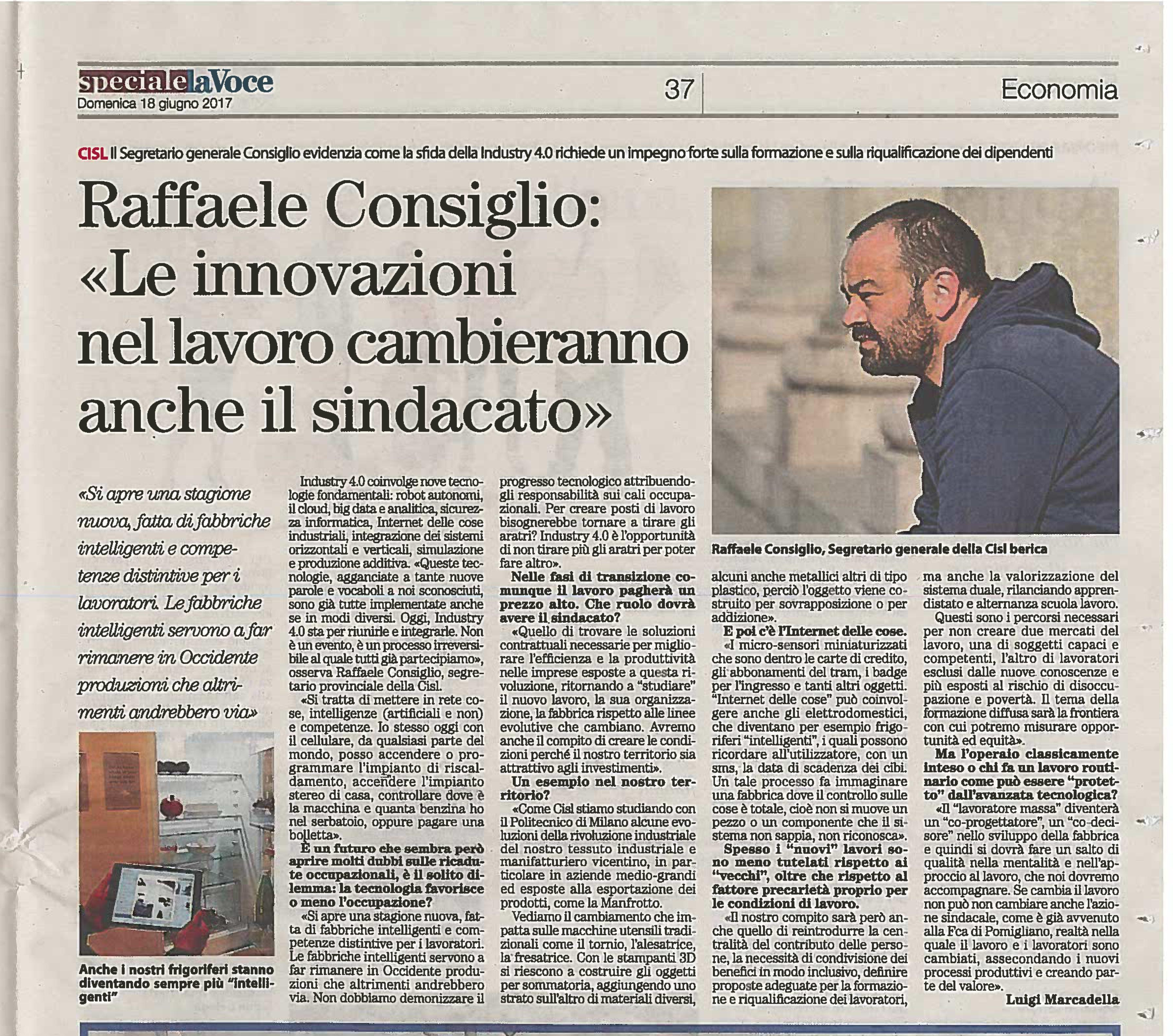 Le riflessioni di Raffaele Consiglio Segretario CISL Vicenza su La Voce dei Berici, da oggi in edicola.
