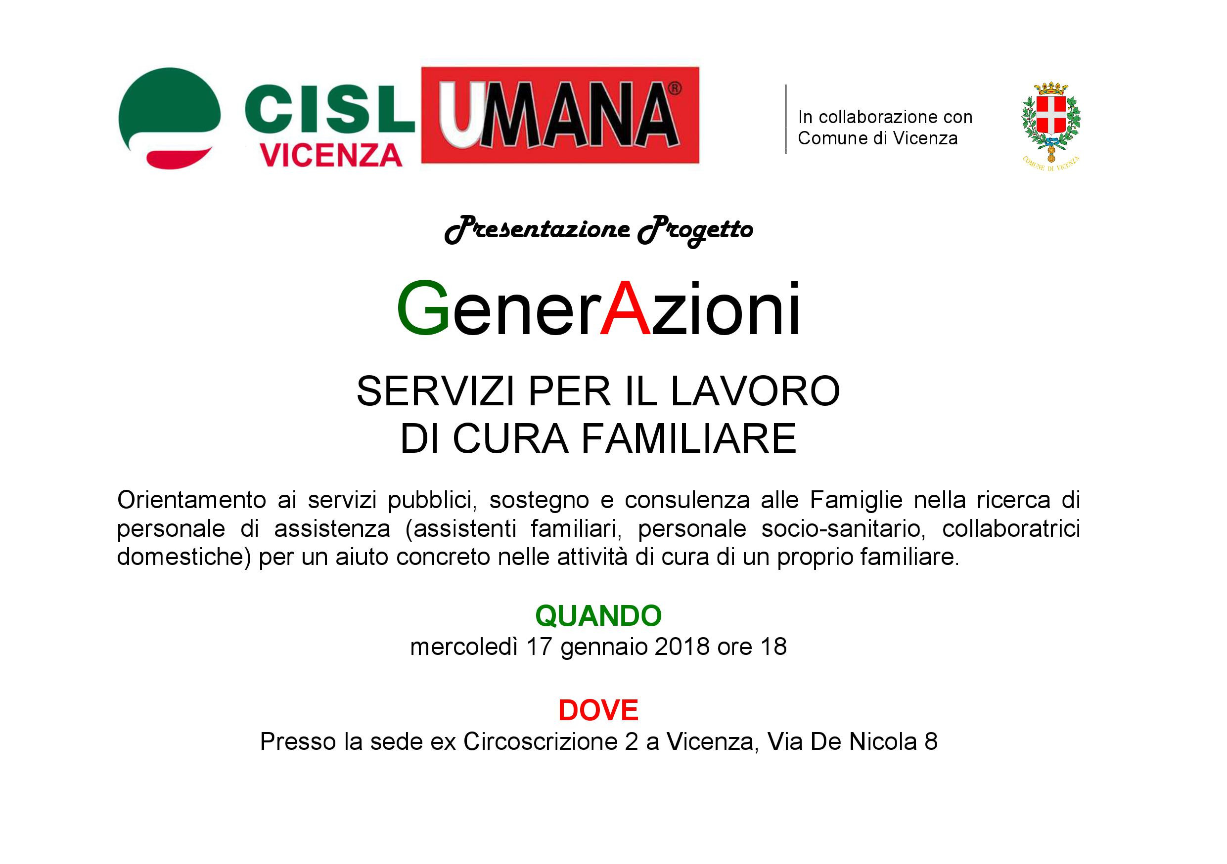La presentazione al pubblico del nuovo Progetto GenerAzioni SERVIZI PER IL LAVORO DI CURA FAMILIARE Orientamento ai servizi pubblici, sostegno e consulenza alle Famiglie nella ricerca diAltre news