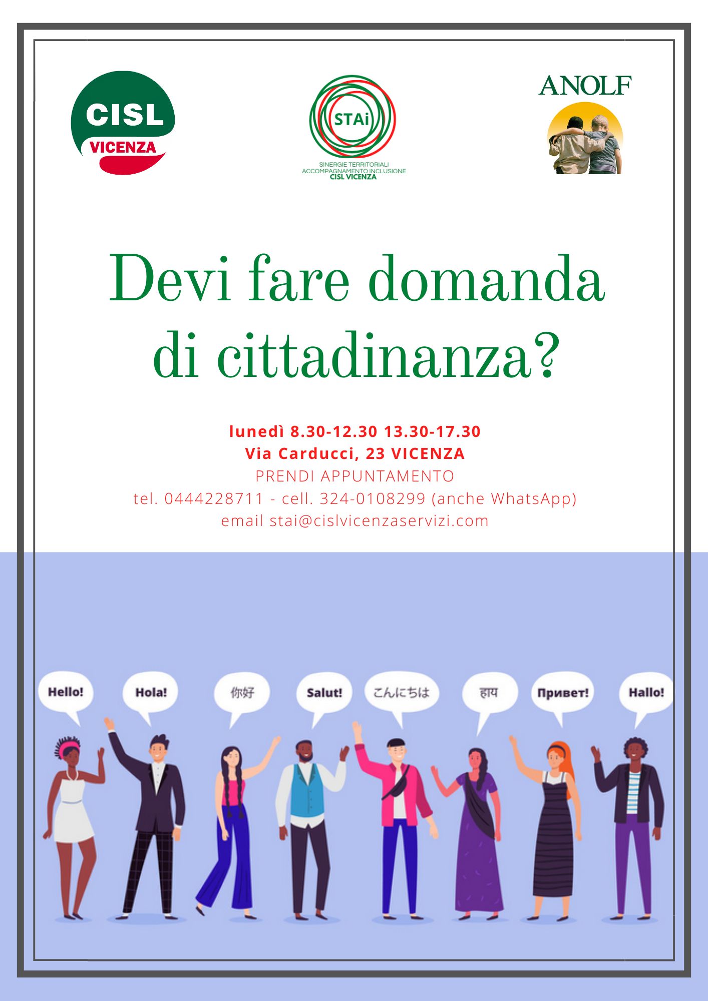 Presso lo sportello S.T.A.i è possibile ricevere consulenza ed inoltrare la propria richiesta per l’acquisto della cittadinanza italiana.